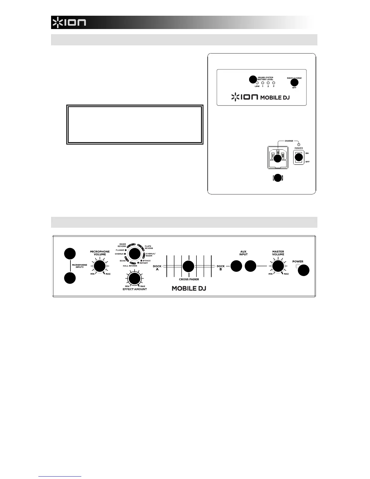 5. VOLUME MASTER – Questa manopola regola il volume dell'altoparlante del MOBILE DJ.