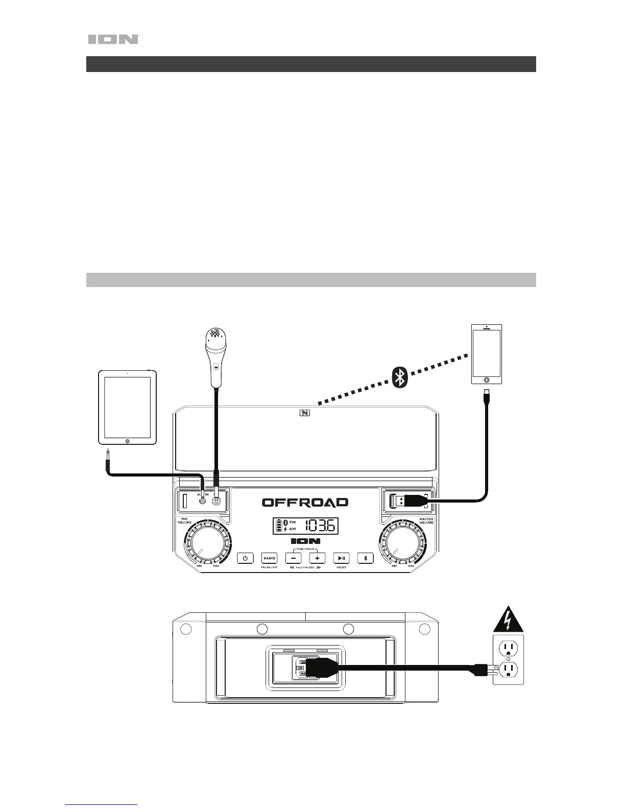 6. Verbinden Sie Ihren Musik-Player mit einem Audiokabel oder via Bluetooth (siehe Betrieb