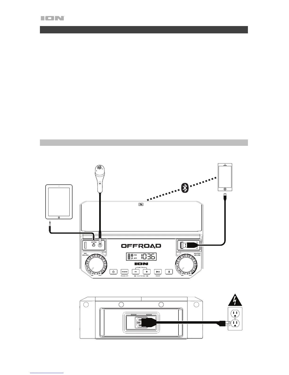 6. Connect your music player with an audio cable or Bluetooth. (see Operation >