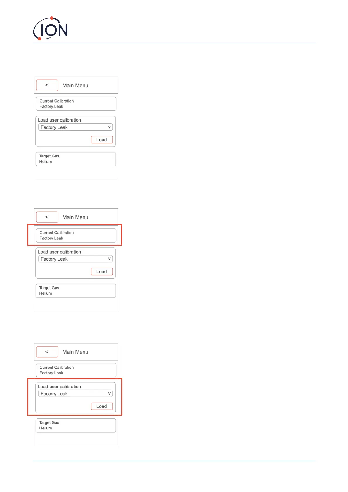 Load user calibration: This option allows you to change between calibrations stored on the instrument. Once you