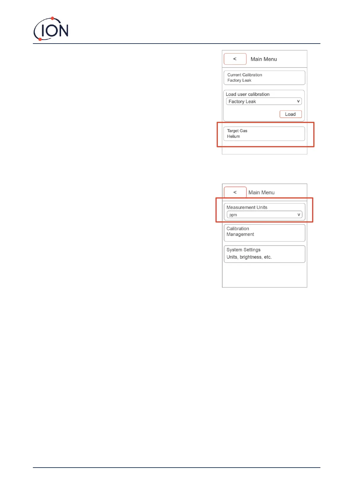 available depend on the selected calibration. If the Leak Calibration is