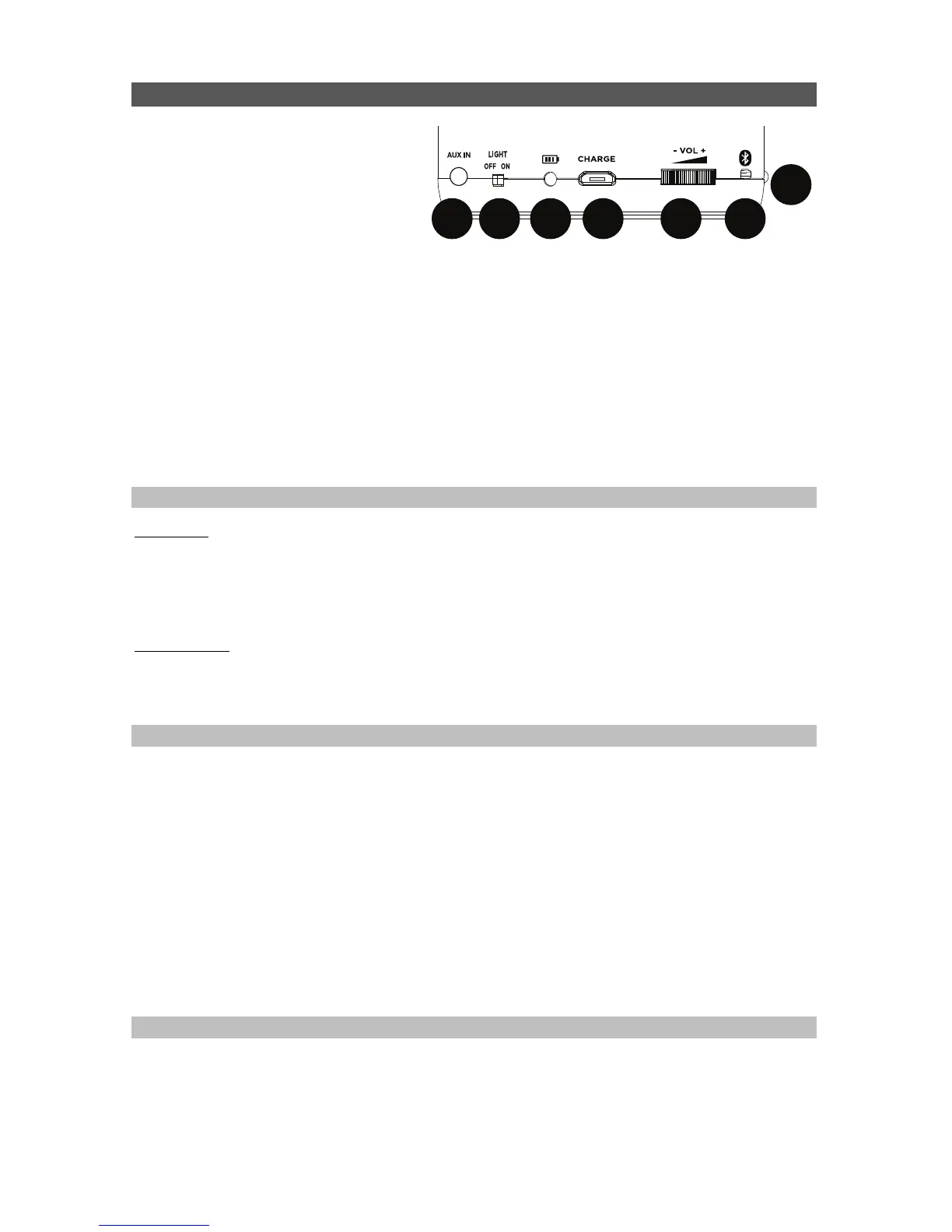 6. Micro-USB Charging Port – Connect the included micro-USB cable to connect Party Starter to a