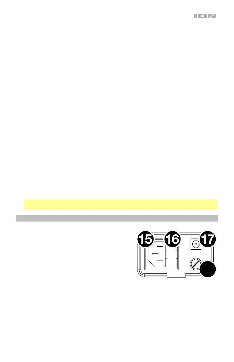 12. Ingresso ausiliario: questo ingresso stereo da 3,5 mm (1/8”) può essere utilizzato per collegare