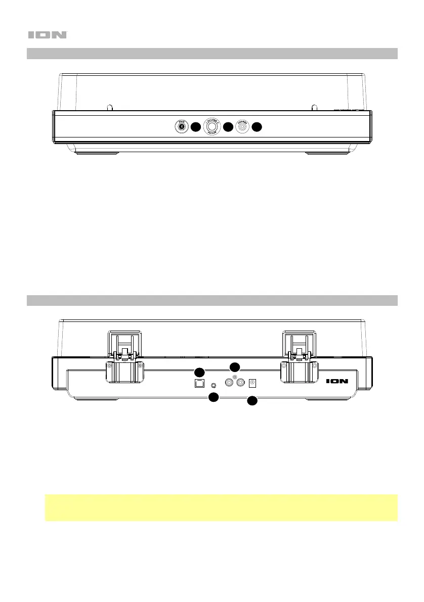 10. Koptelefooningang: sluit hier een koptelefoon aan (afzonderlijk verkrijgbaar) om naar uw plaat te