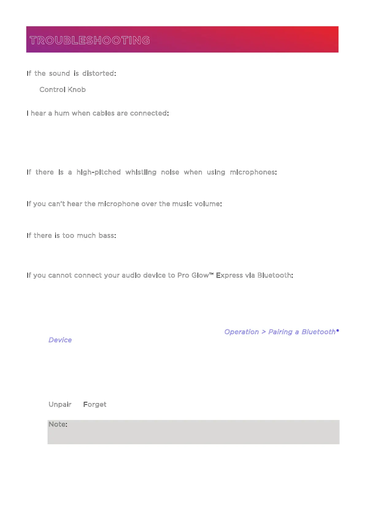 instrument, or microphone. Also, try to reduce the overall volume of Pro Glow™ Express using