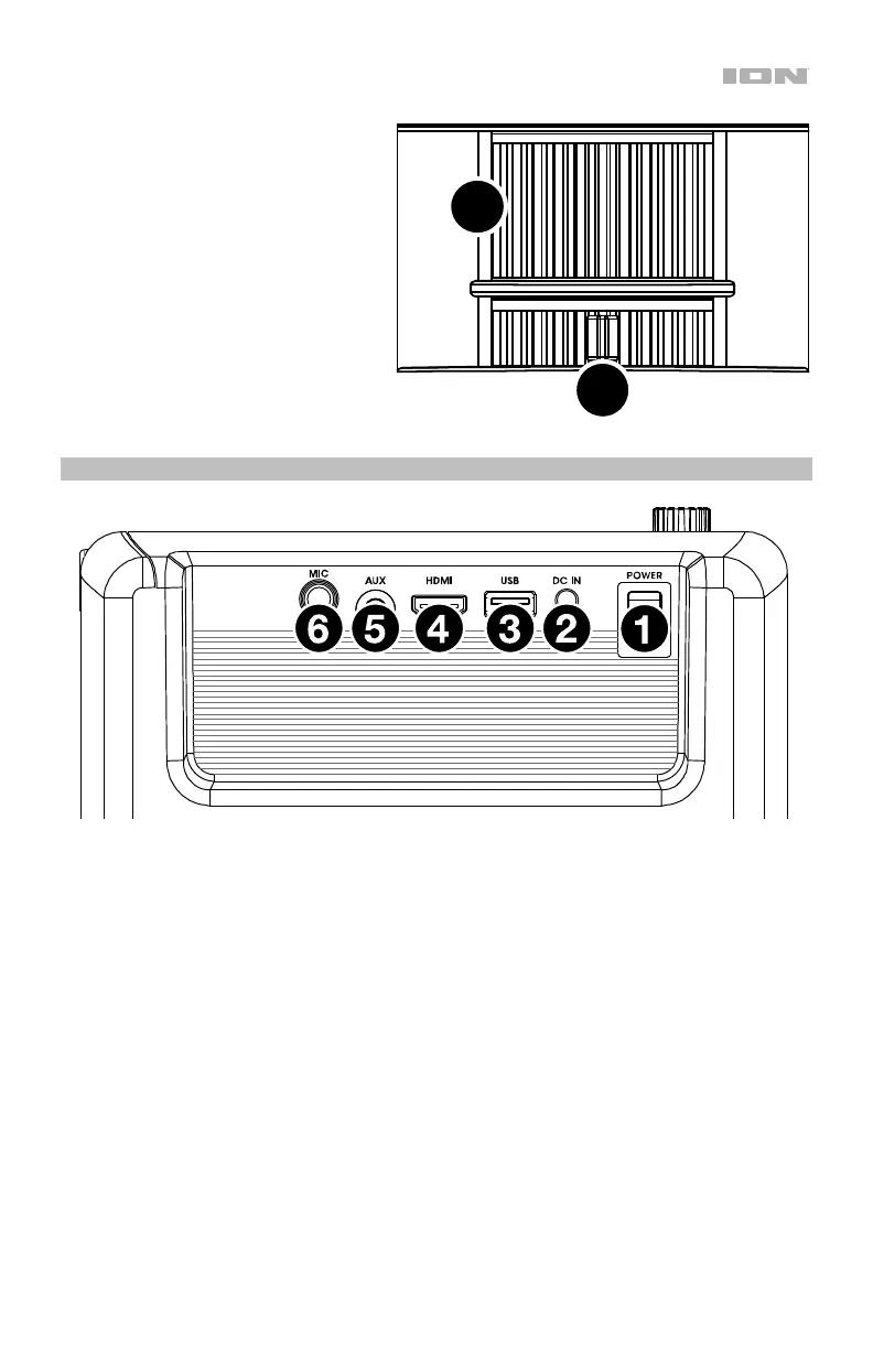 6. Mic Input (1/4" / 6.35 mm): Connect the included microphone to this 1/4” (6.35 mm) input, if