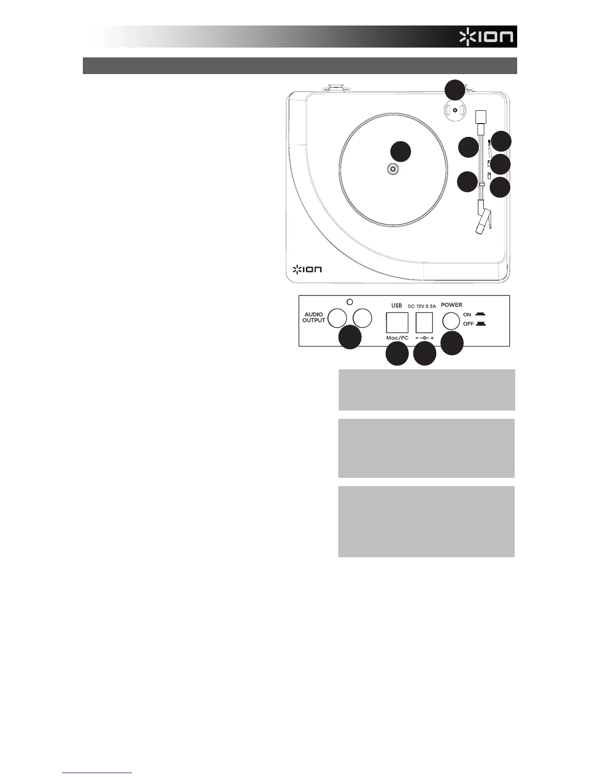 9. USB-audiouitgang: gebruik de meegeleverde USB-kabel om uw draaitafel op uw computer aan te