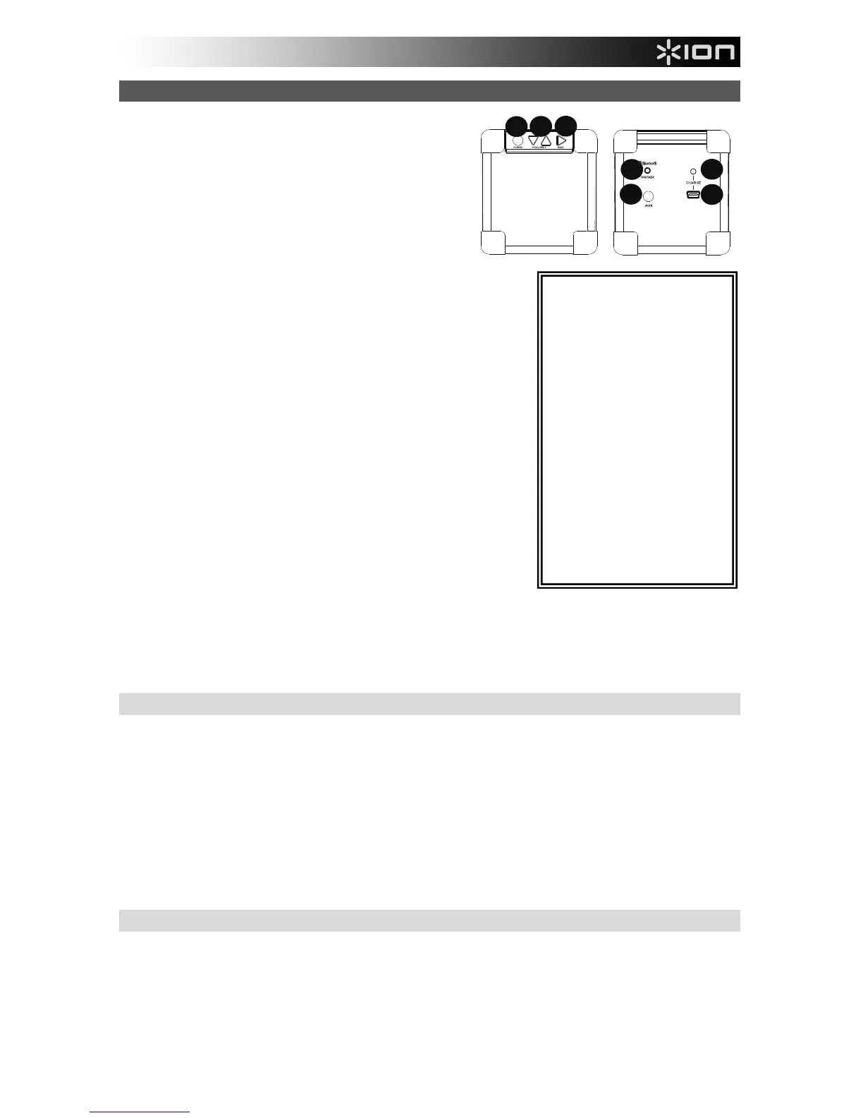 7. Aux-ingång - Anslut utgången på en MP3-spelare eller annan ljudkälla till denna ingång.
