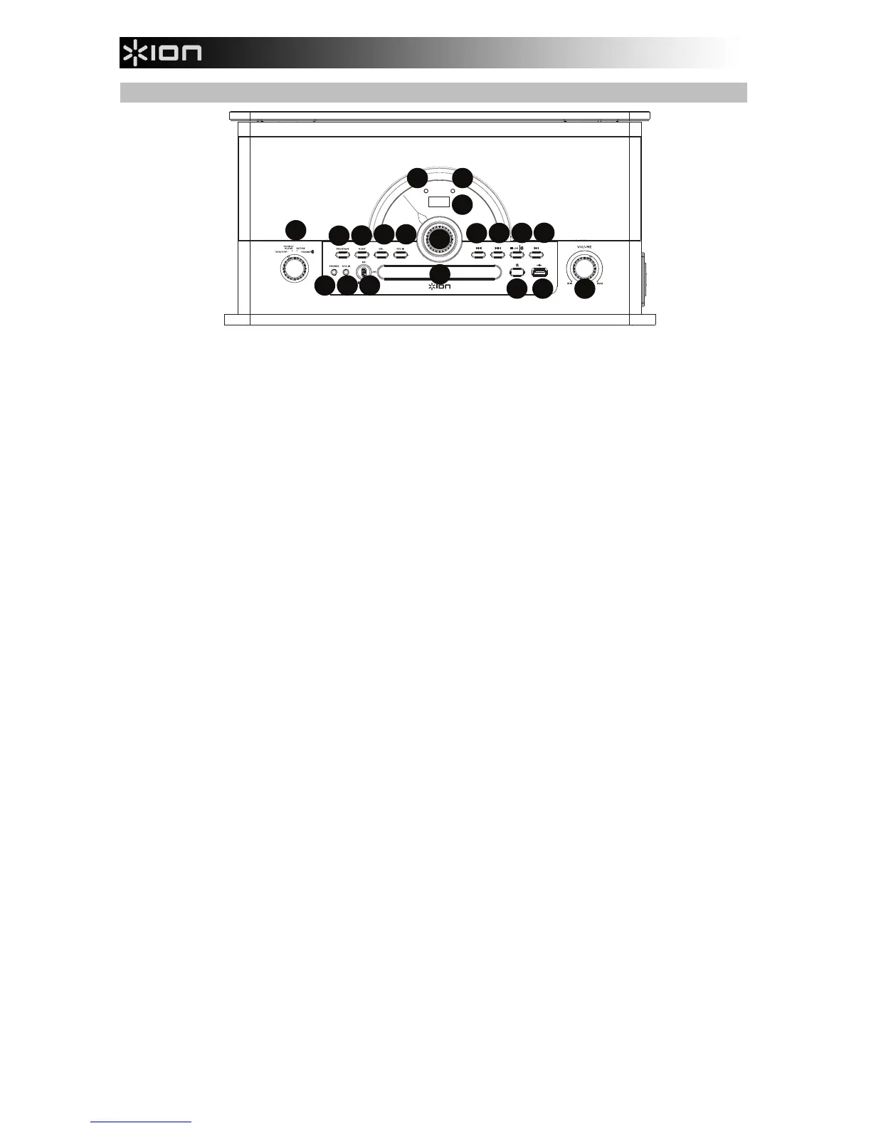 19. Puerto USB: Reproduzca pistas desde su unidad flash USB o grabe canciones en la unidad flash