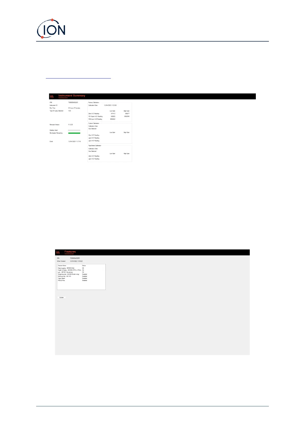To purchase additional features, contact ION Science Ltd or your distributor. Once the transaction is
