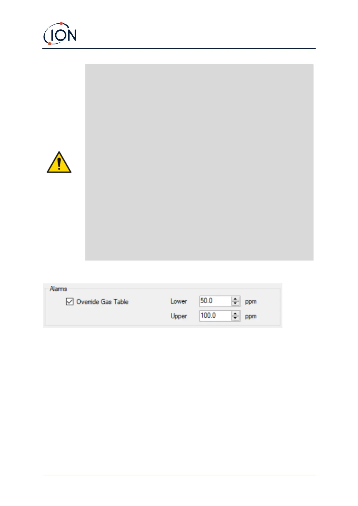 levels. If the gas is changed on the instrument, then the alarm levels will revert to those in the gas