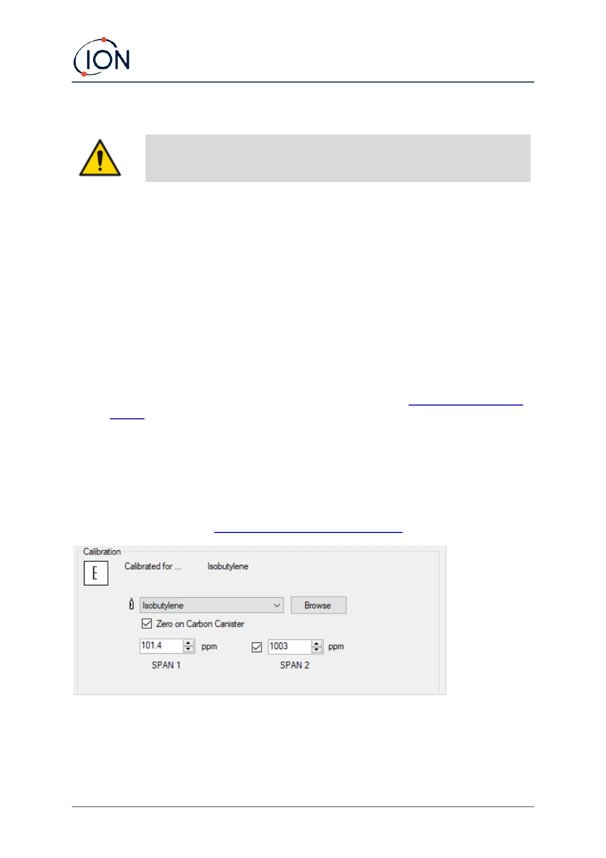 • Factory Calibration is set by ION Science Ltd during instrument manufacture or on re-