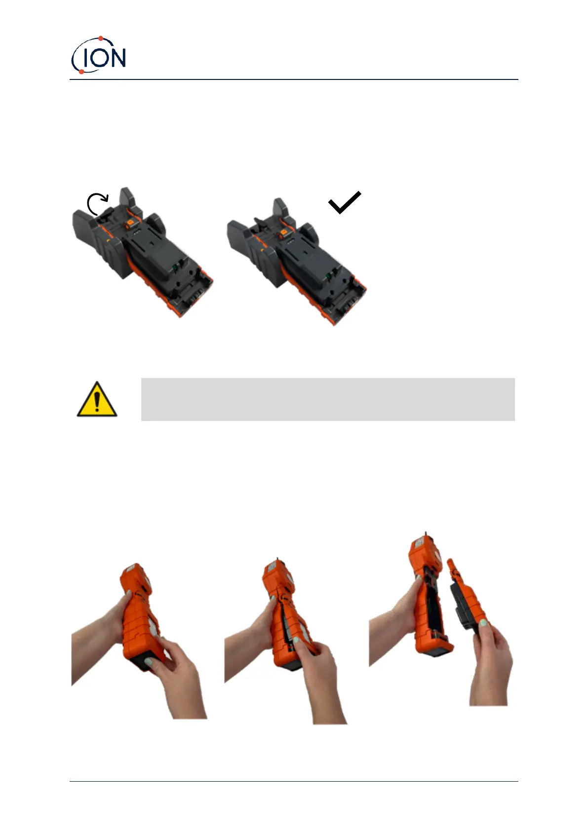 ion battery pack are aligned with those in the cradle. To hold the lithium-ion battery in place, use the