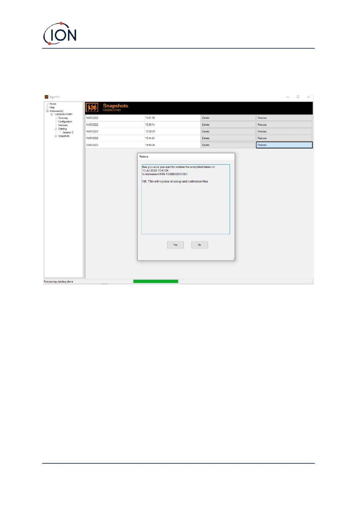 Click Yes to load the snapshot. When the loading is complete, click Close and restart your TIGER XTL.