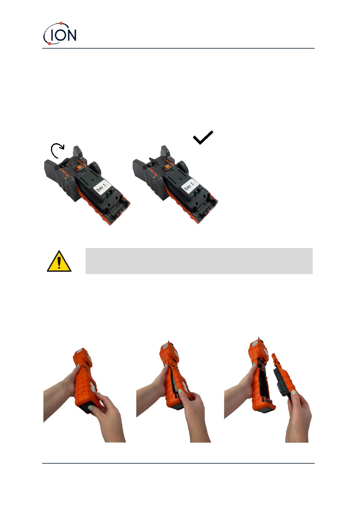 ion battery pack are aligned with those in the cradle. To hold the lithium ion battery in place, use the