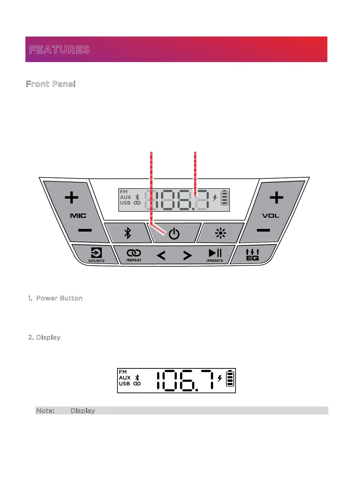 ION TRAILBLAZER ROAR - Features; Front Panel