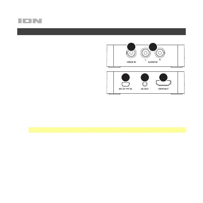 4. AV Out: Use the included 1/8" (3.5 mm)-to-RCA audio-video cable to connect