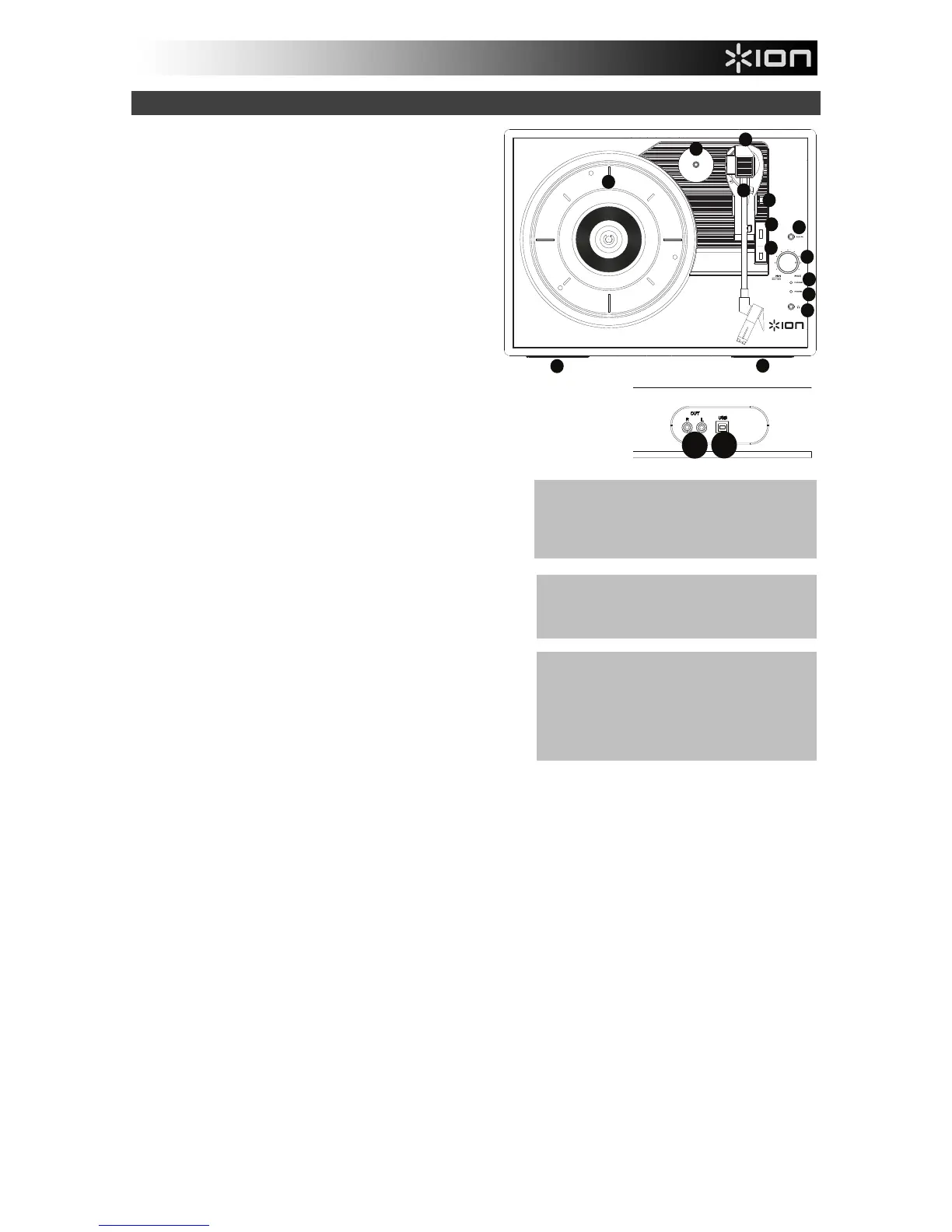parleurs internes et du casque d’écoute. Afin de mettre le Vinyl Motion hors tension, veuillez tourner ce bouton