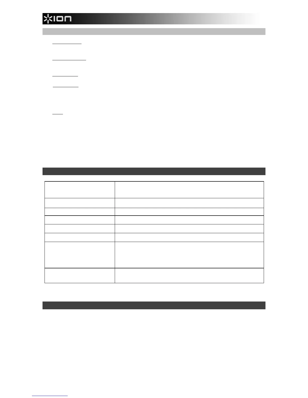 BEFORE RETURNING THE PRODUCT, please contact ION Audio or your retailer for technical support.