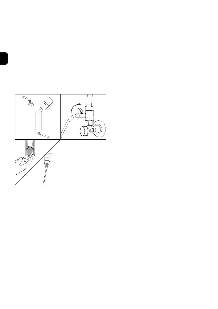 • Gießen Sie 50 ml Desinfektionsmittel in den am Was-