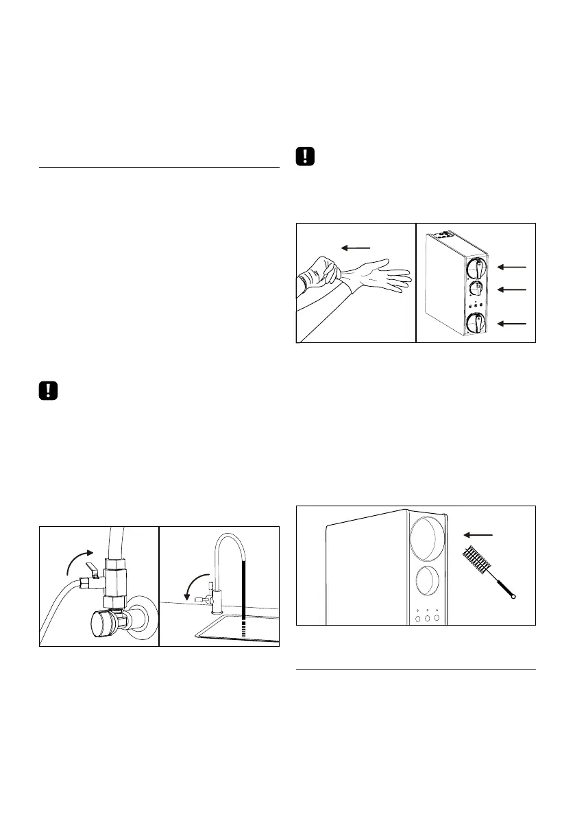 - Close the inlet valve (1) and open the dispenser tap (2)