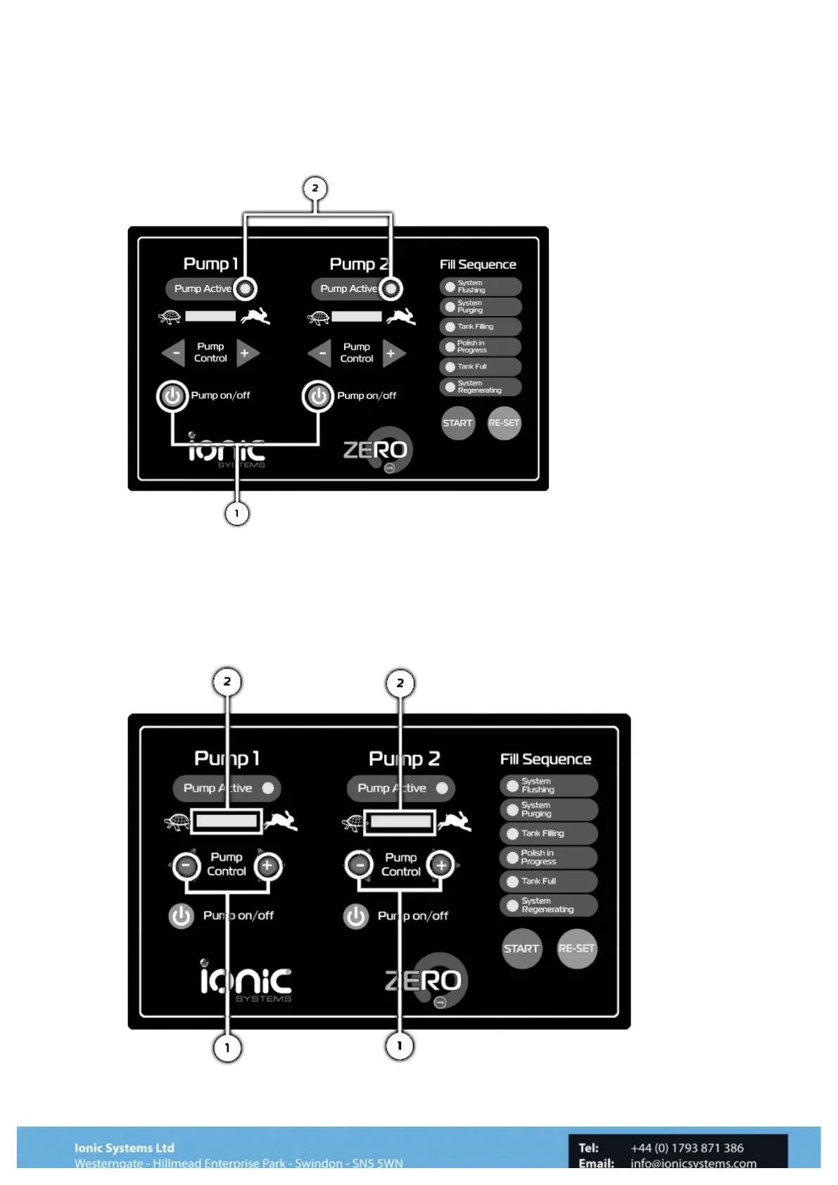Step 1 - Depress the ‘Pump on/off’ (1) for the desired pump. The Pump