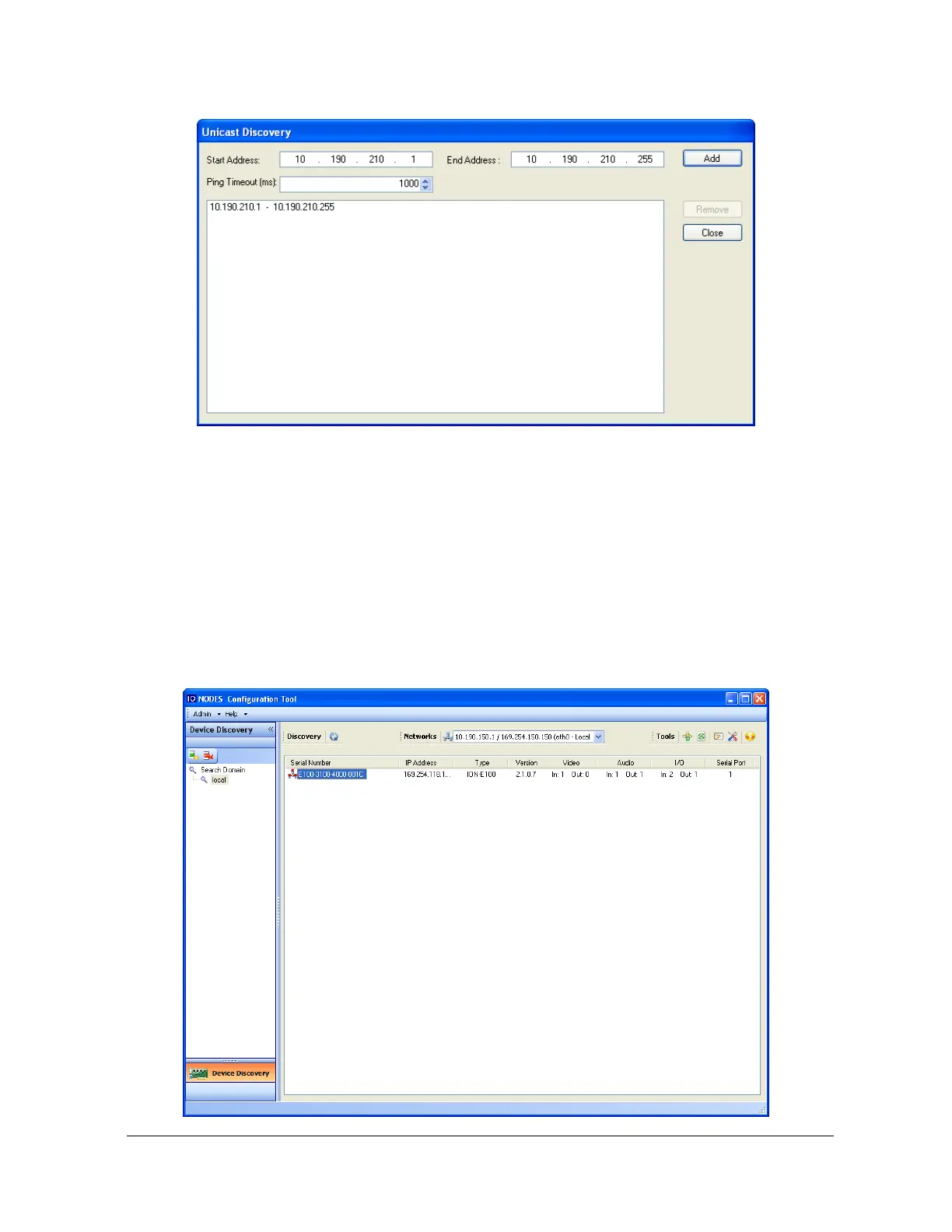 To configure the Unicast Discovery, add one or more IP address ranges. The Unicast Discovery
