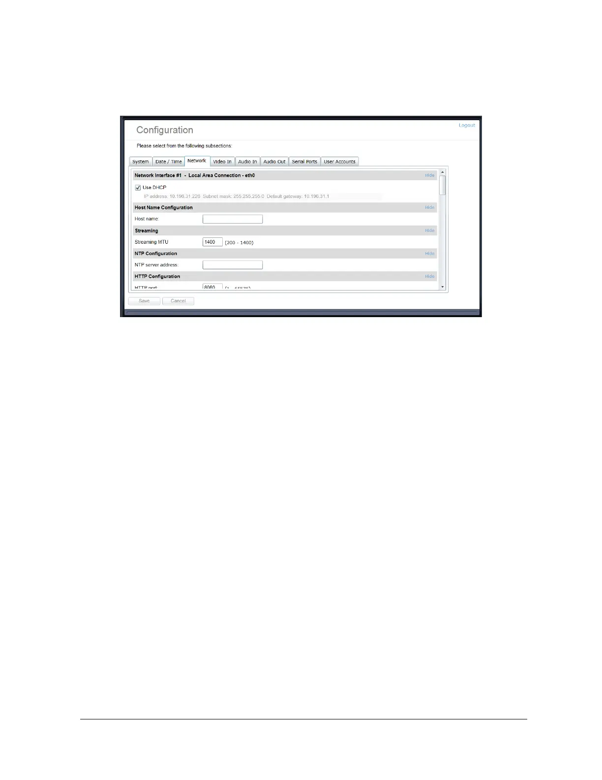 x Host Name Configuration – Set the encoder’s network name.