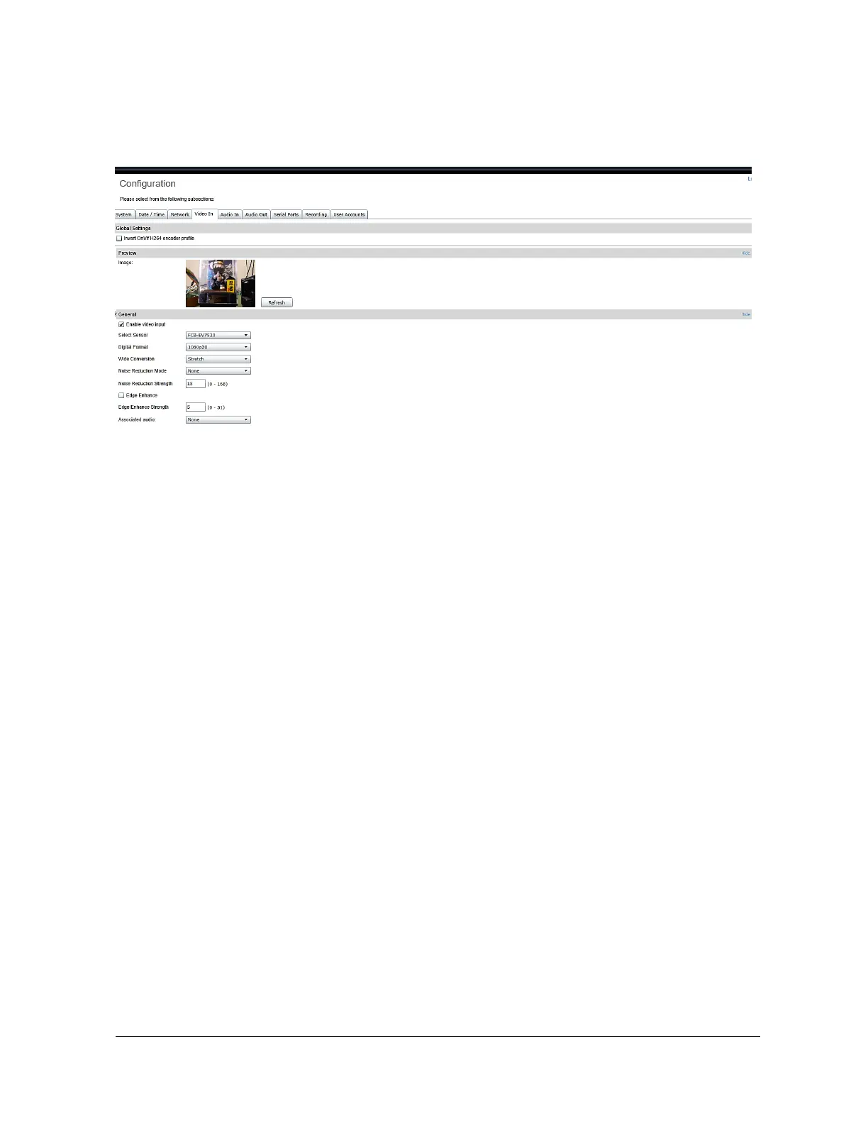 Under the Configuration section, select the Video In tab to perform the following operations: