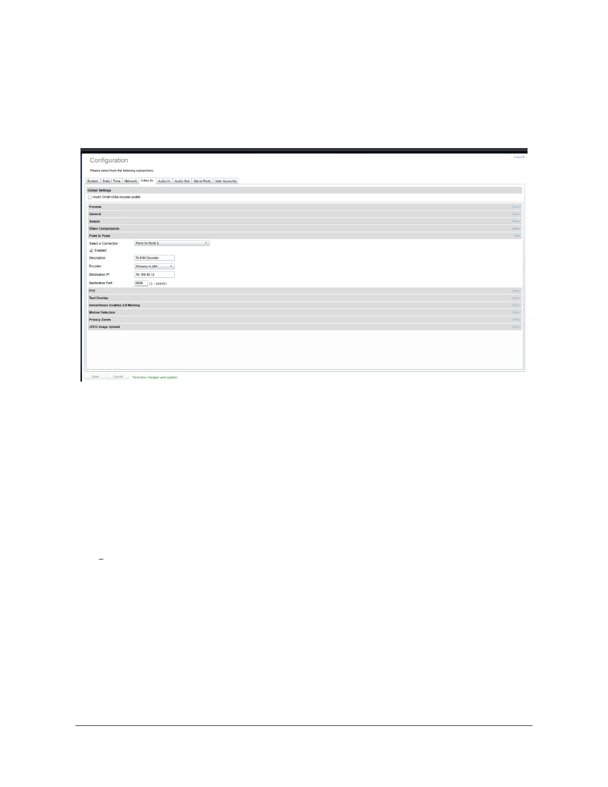 Point to Point – This section allows you to configure point to point video connections for