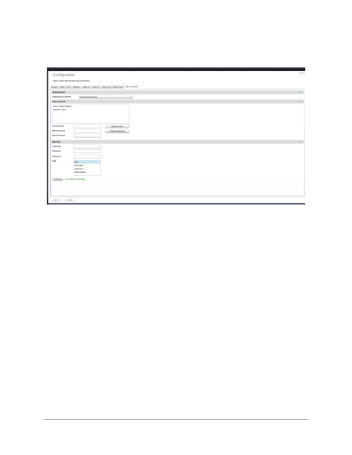 x The Poweruser role allows access to live video and changing any setting aside from the