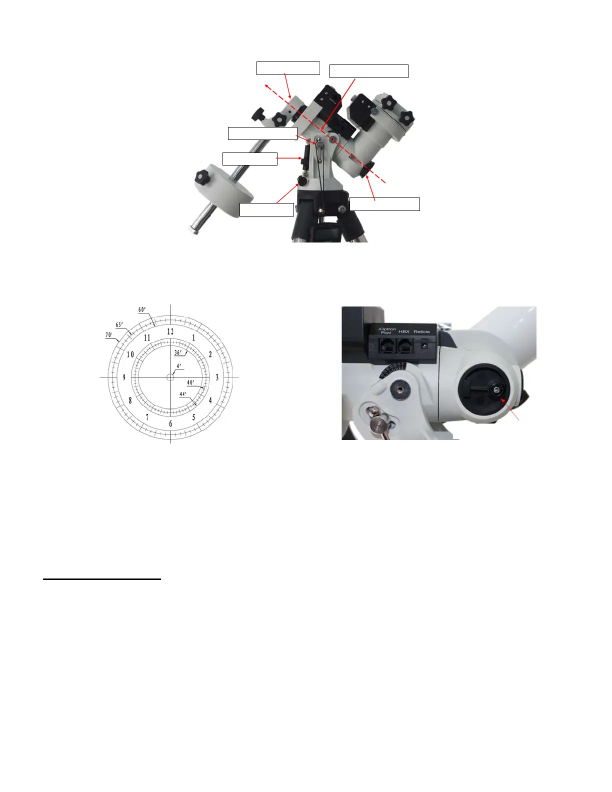 (2) Take off the Polar Axis Cover and Polar Scope Cover. Connect polar scope LED cable between
