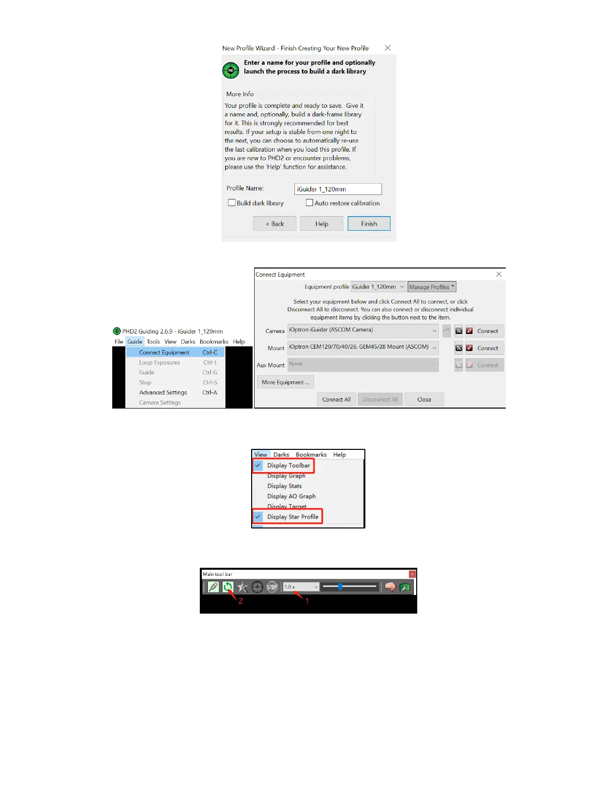 To view the image via iGuider, check “Display Toolbar” and “Display Star Profile” in