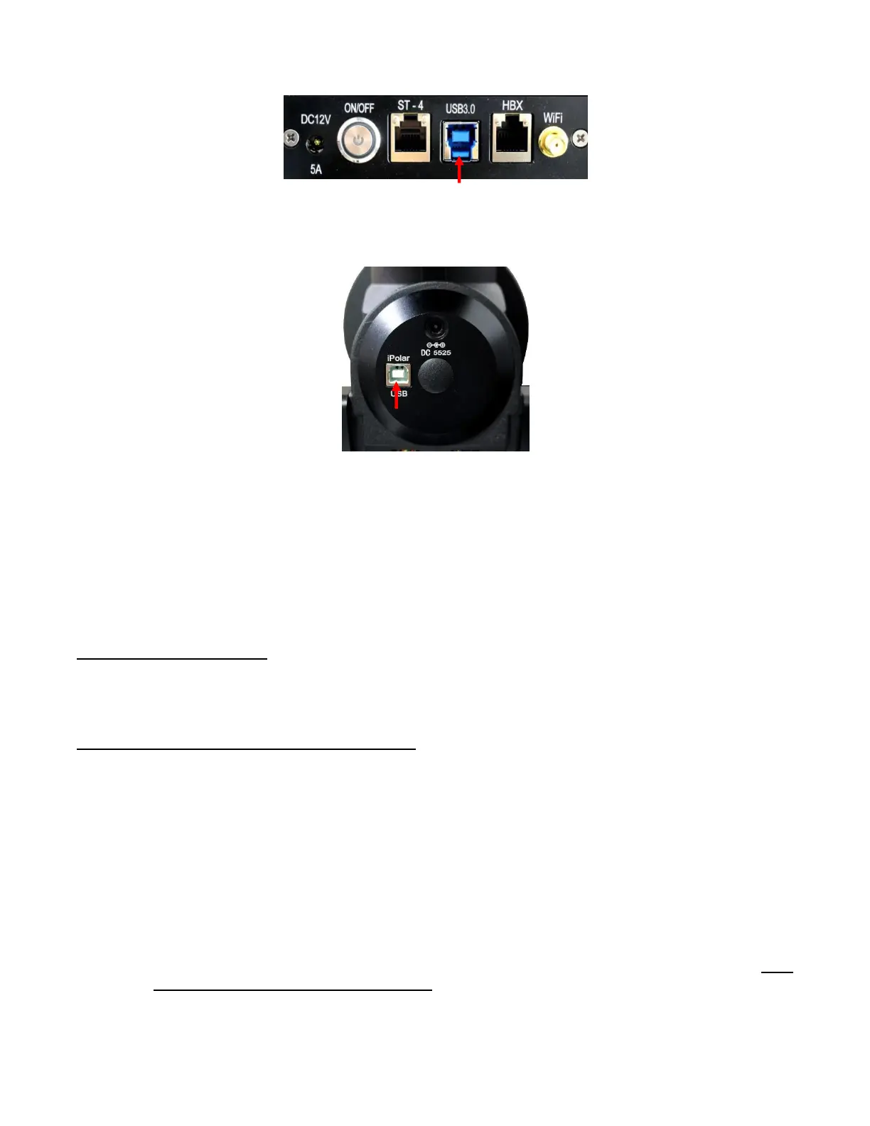 For CEM70, plug a USB cable into the iPolar port on the rear end of mount RA axisto connect
