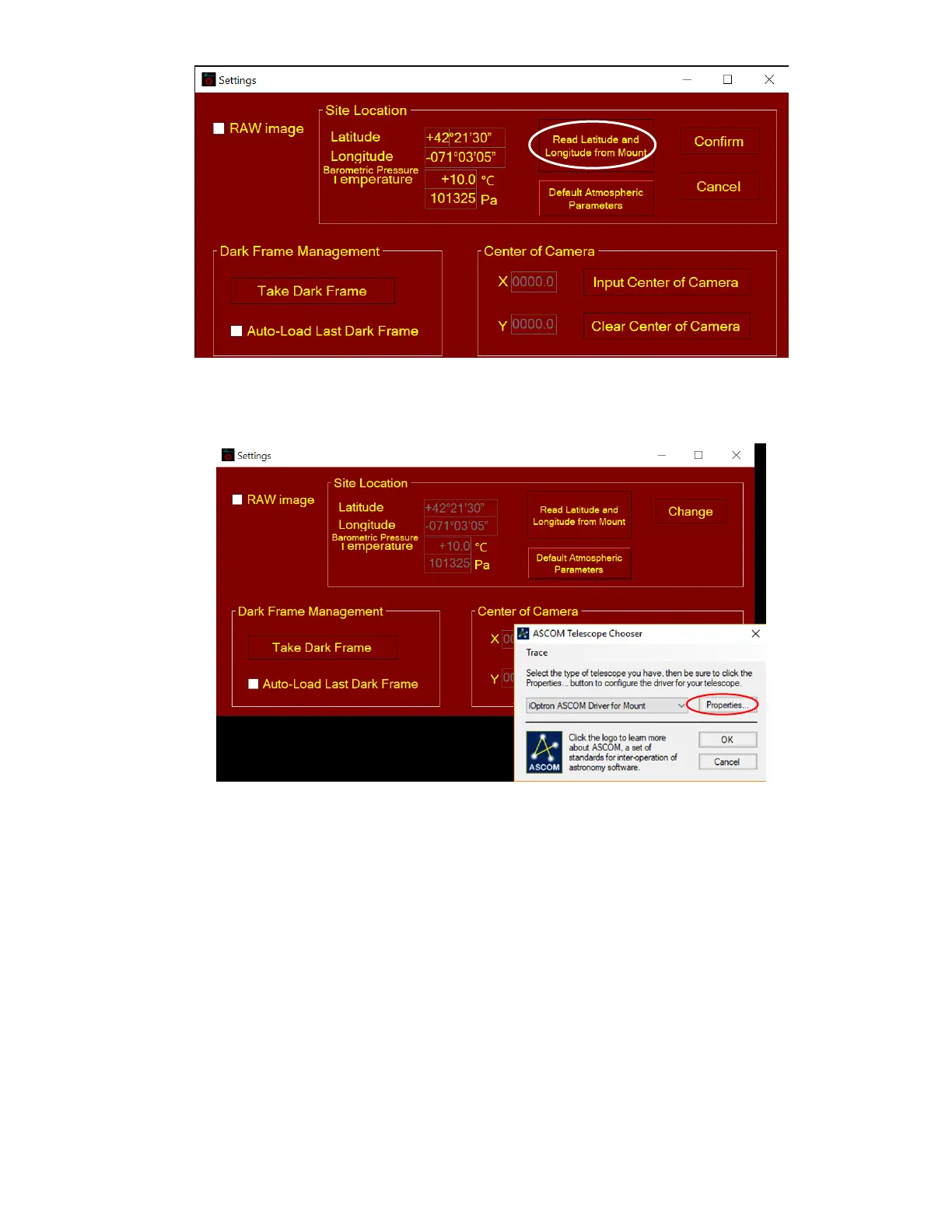 connected to the computer. Select correct mount ASCOM driver from the pull-down menu and