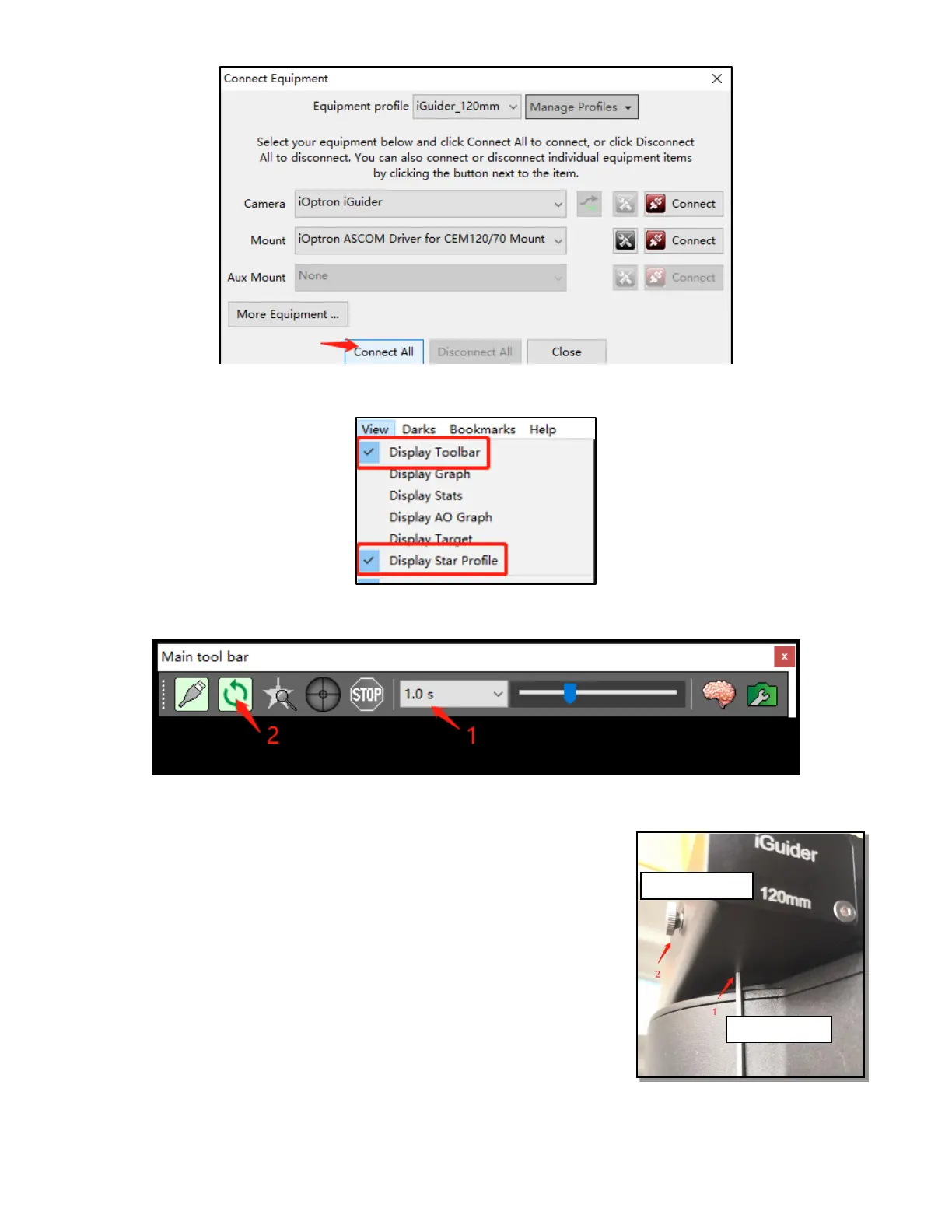 To view the image via iGuider, check “Display Toolbar” and “Display Star Profile” in View