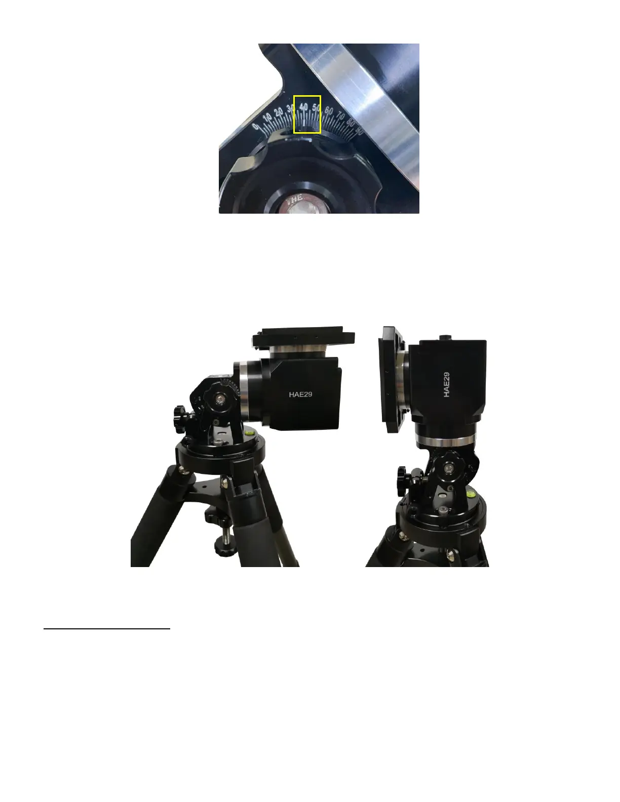 Figure 14. An HAE mount set for equator (0°, left) and altazimuth (90°, right) use