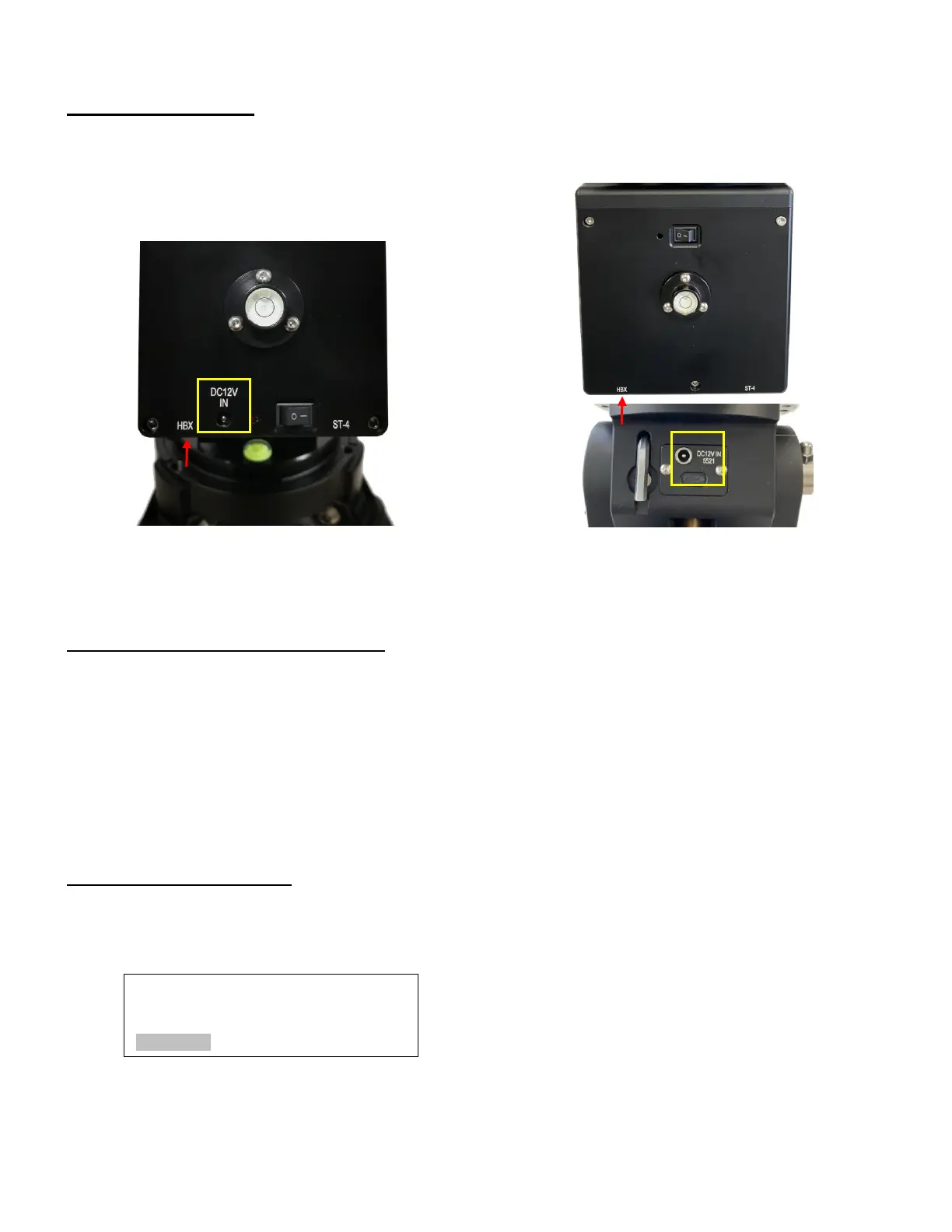 Connect the Go2Nova® 8409 Hand Controller to the HBX port on the mount back. Plug in a 12V DC