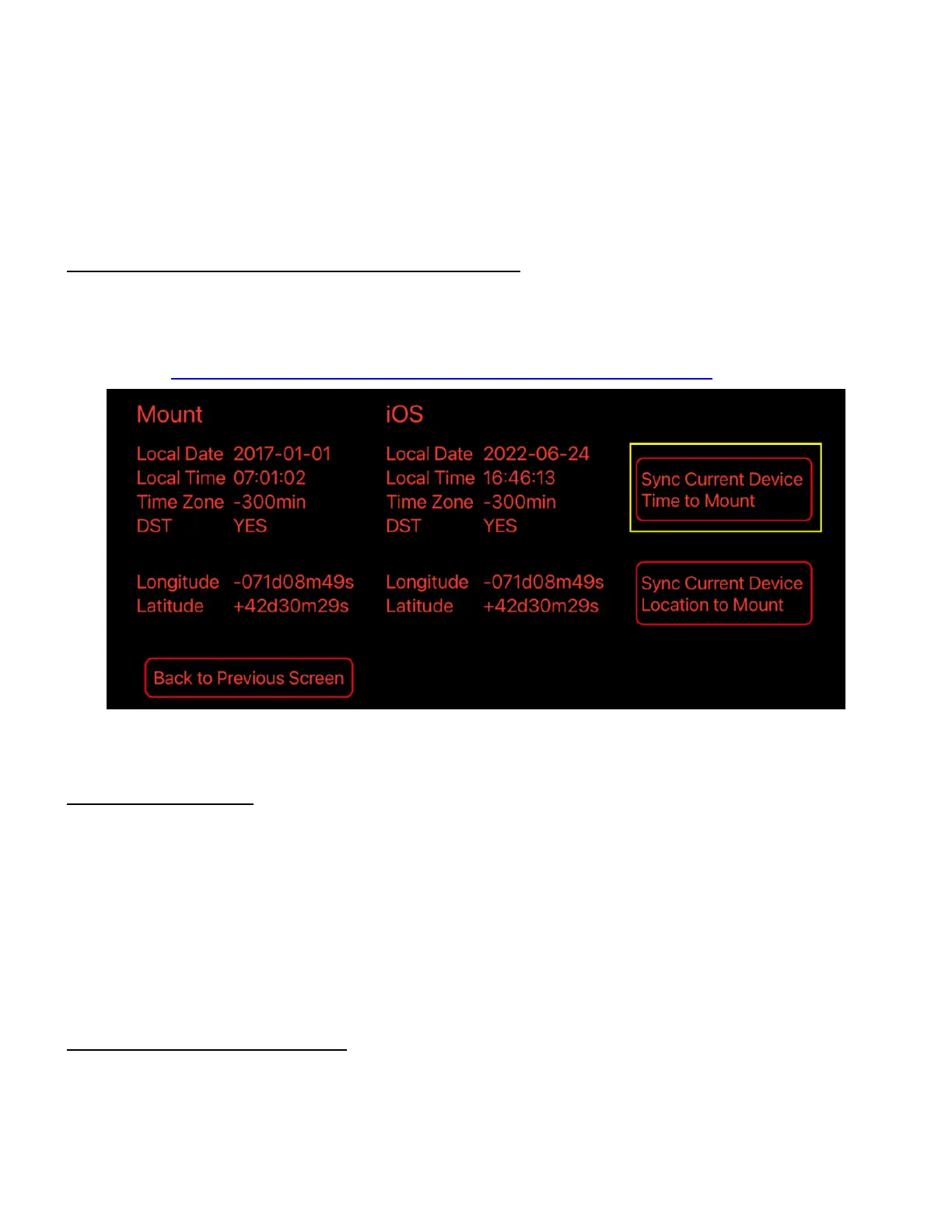 Figure 13. Sync Time and Site info from iOptron Commander Lite to the HAE mount