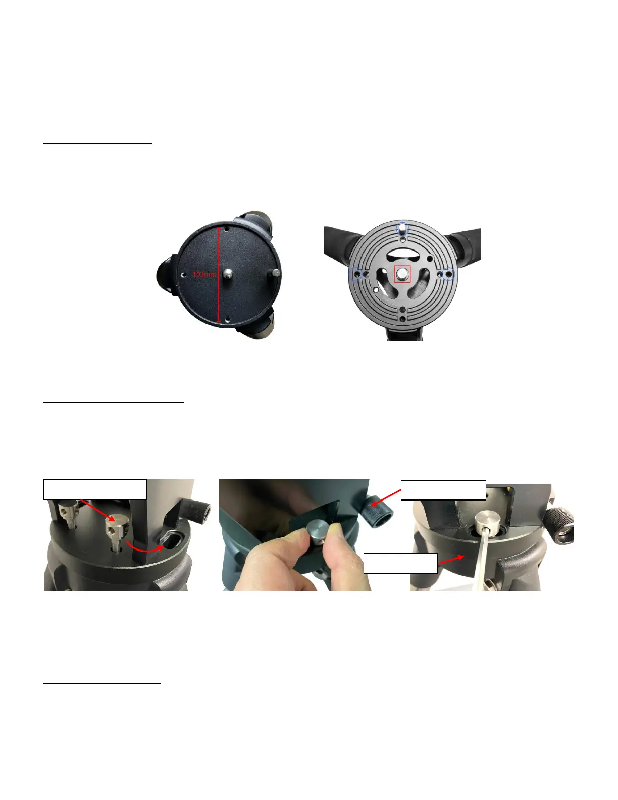 The mount has a 102mm base. Thread the Alignment Peg onto the tripod head, on top of a tripod