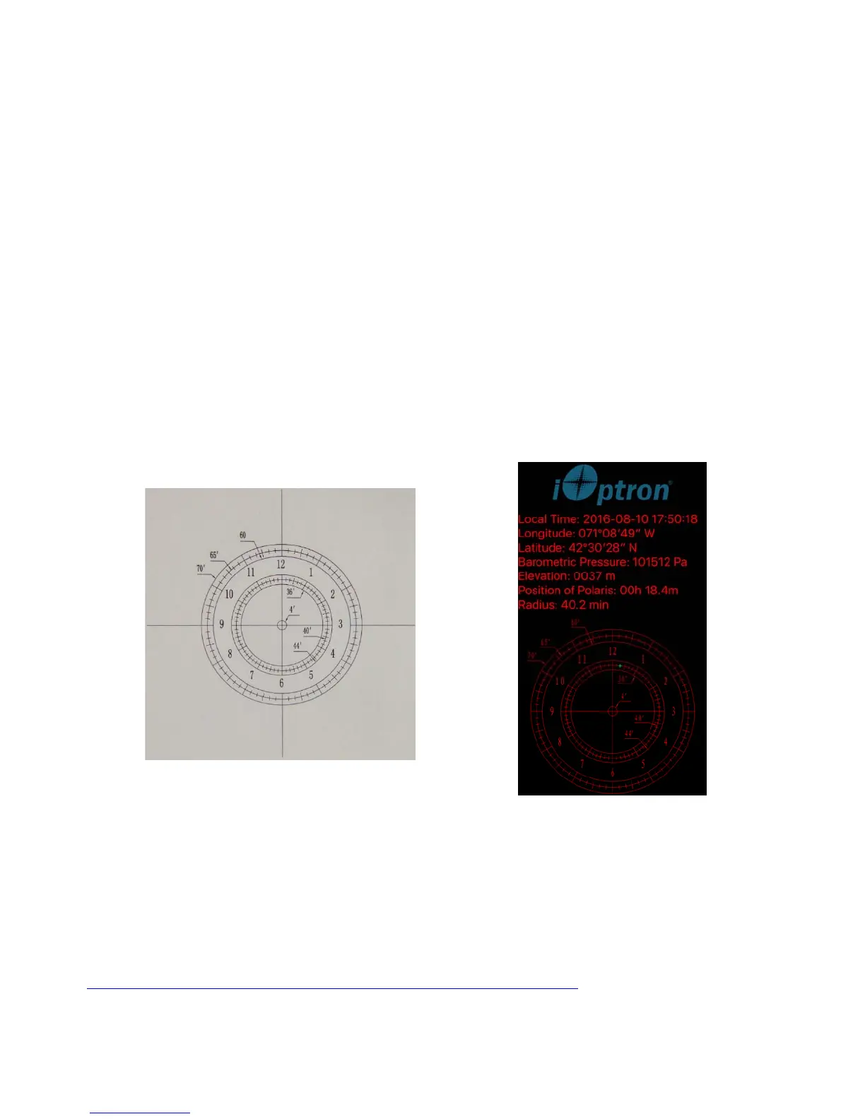 60’ to 70’, respectively. The 36’ to 44’ concentric circles are for polar alignment in the northern