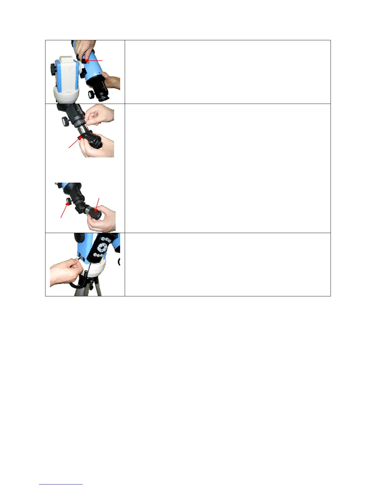 of the telescope. Tighten the thumbscrews to a firm feel only.