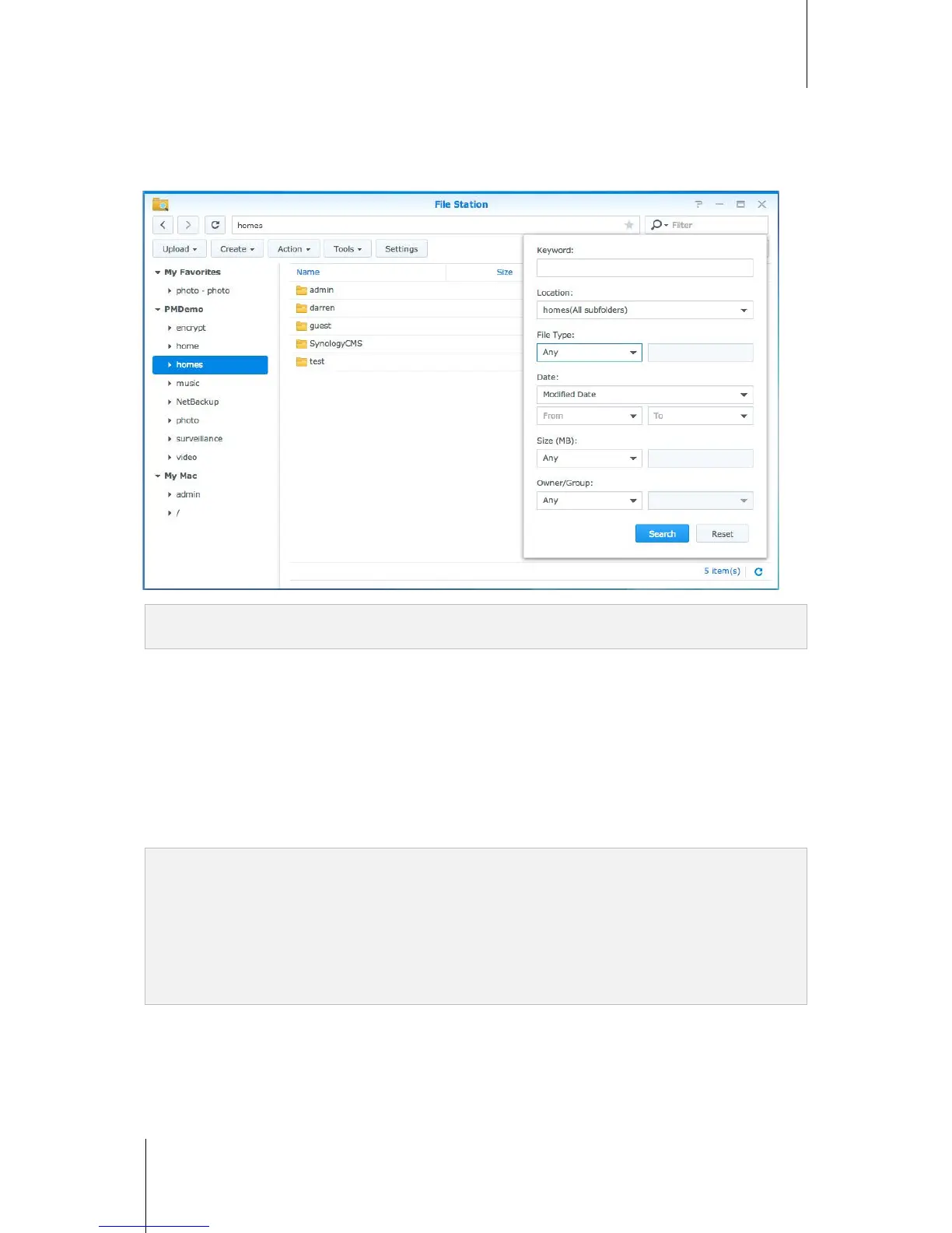 You can type keywords in the Filter field at the top-right corner of File Station to filter through files or folders in