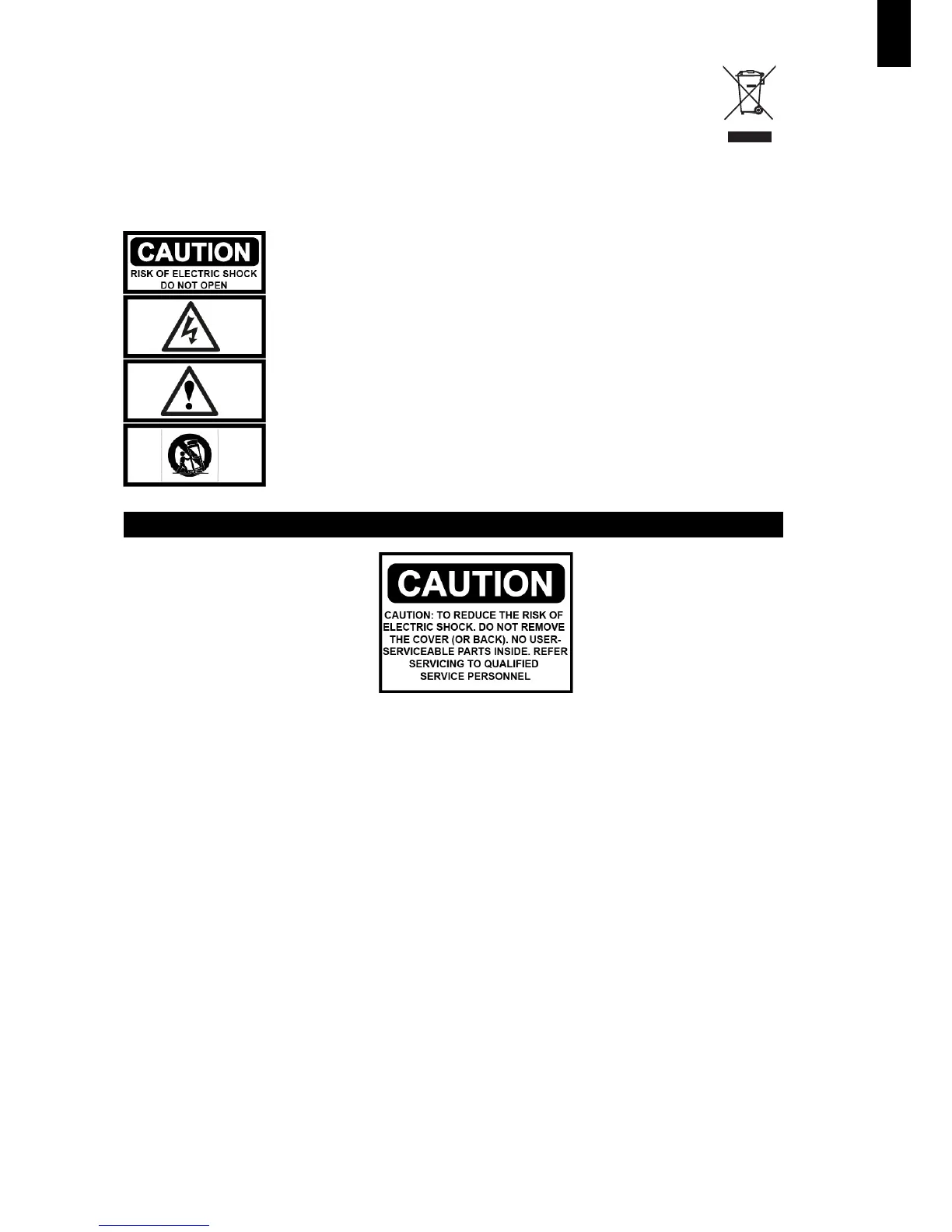 CAUTION: To prevent the risk of electric shock, do not remove cover (or back); no user