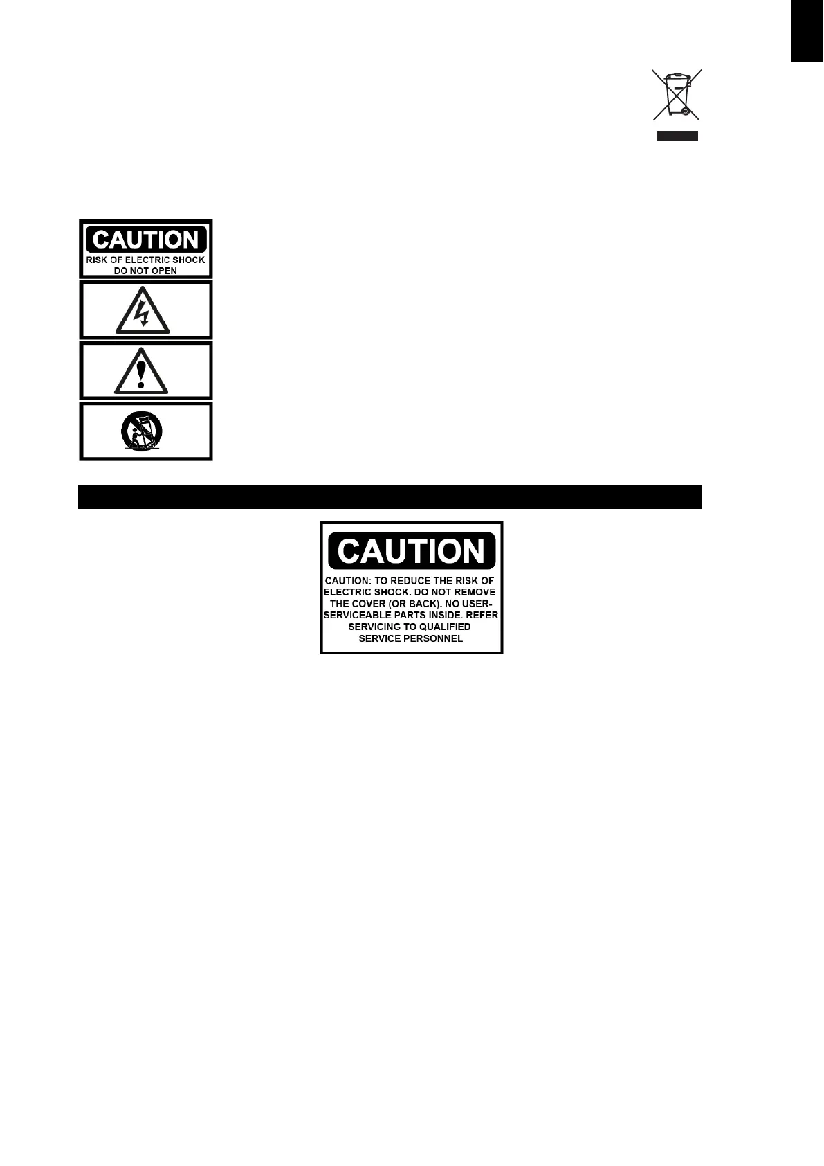 CAUTION: To prevent the risk of electric shock, do not remove cover (or back); no user