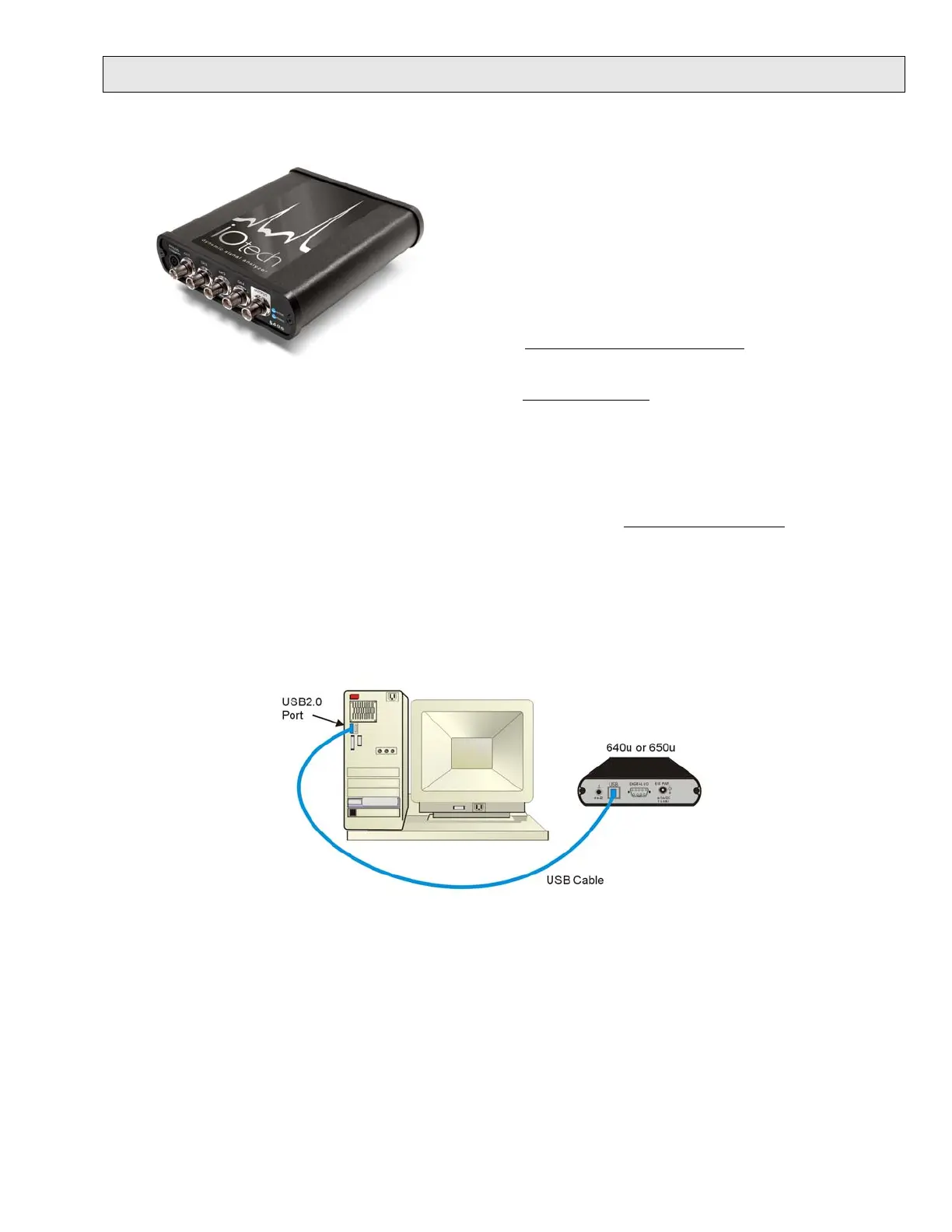 1. Using a USB cable, connect the 640u [or 650u] to a USB2.0 port on the computer. USB2.0 port is required.