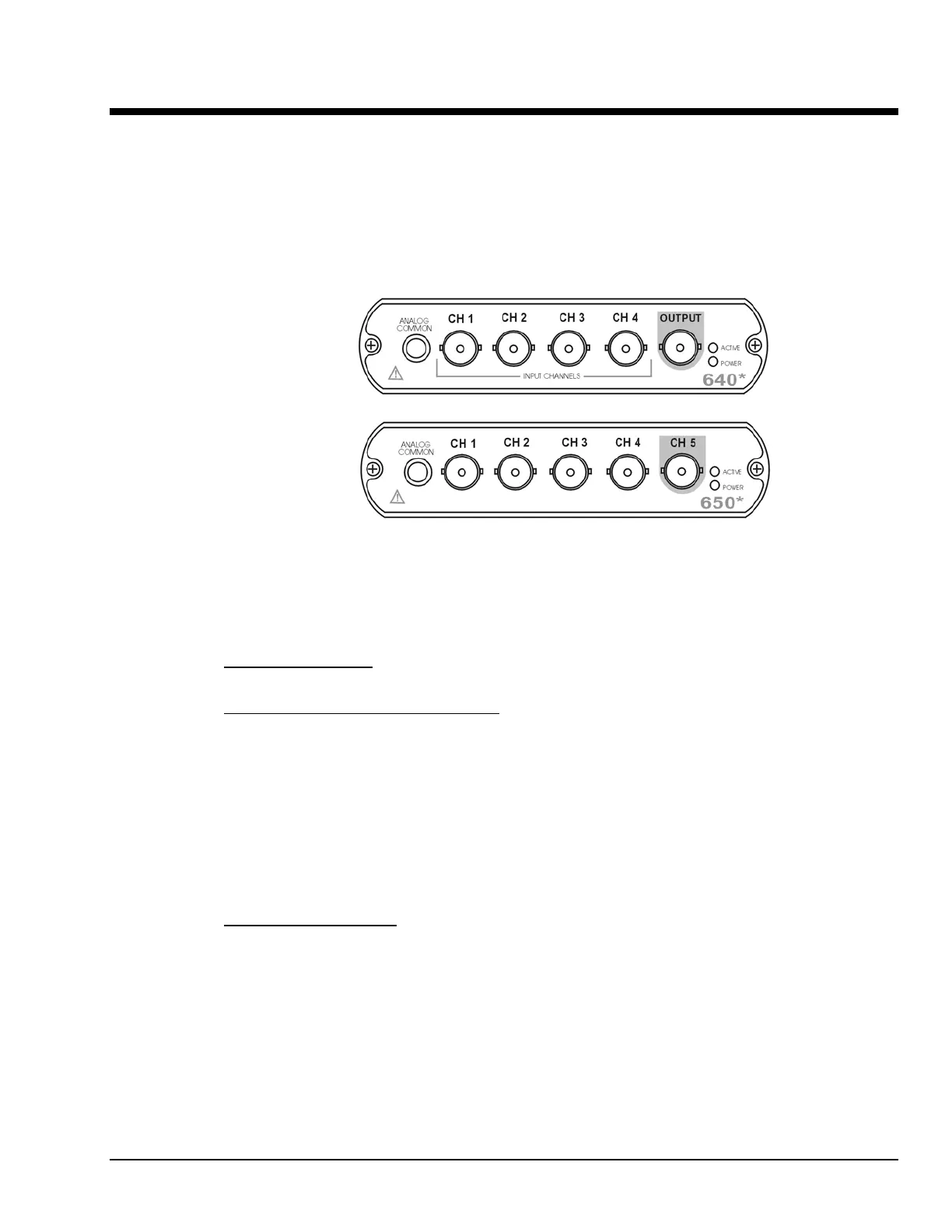The 640 and 650 Front Panels include the following connectors and LED indicators.