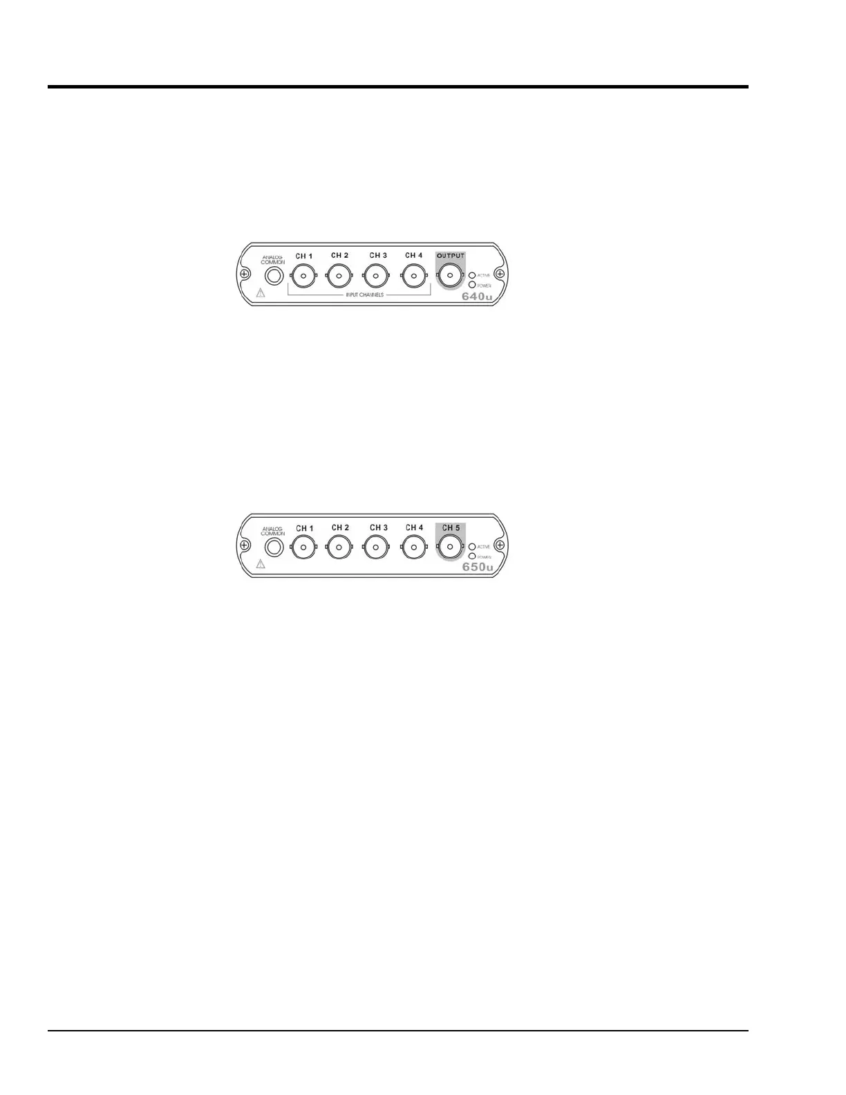 5 analog channel inputs (CH1 through CH5) via front panel BNC connectors.