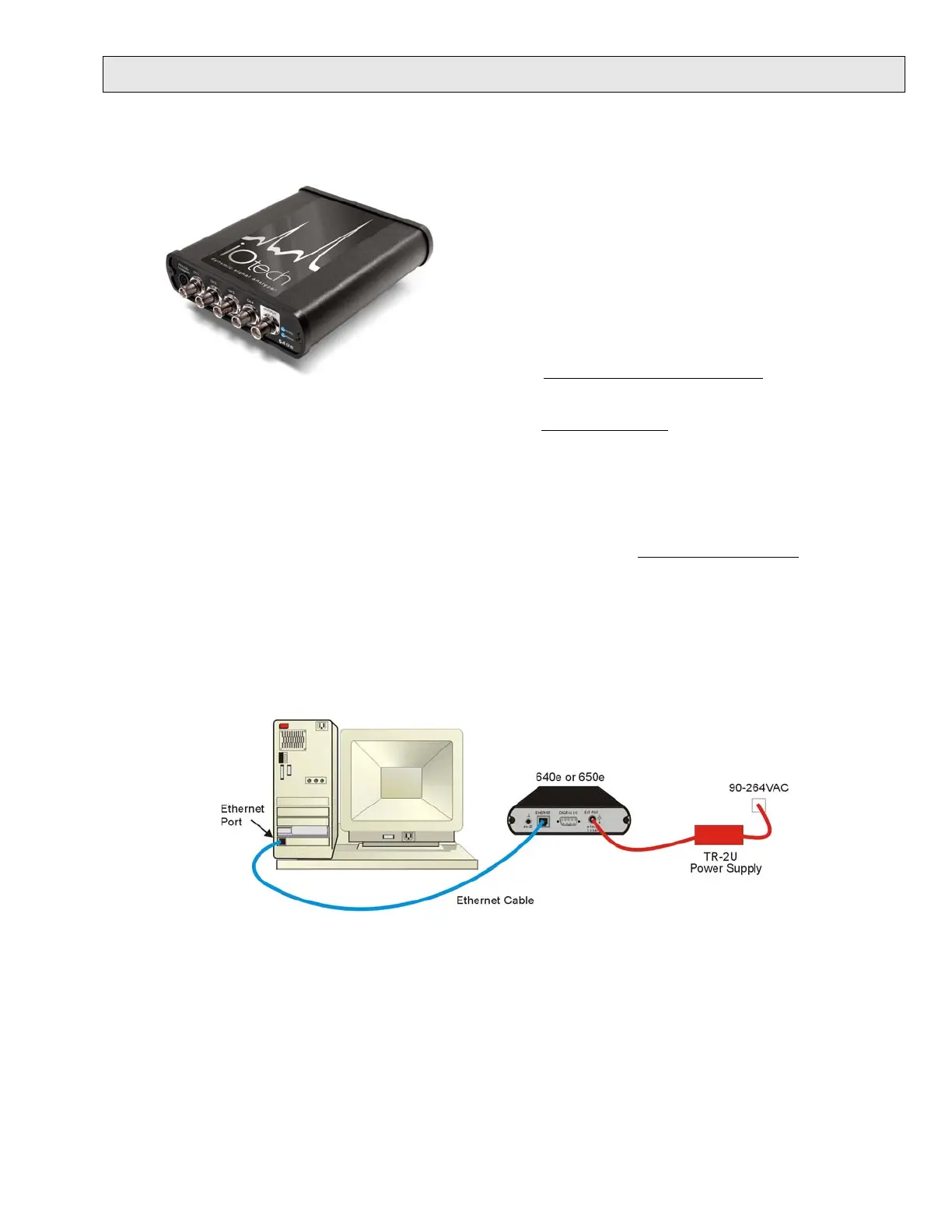 In this scenario a 640e or 650e is connected directly to an Ethernet port on a host computer. Please consult your user’s