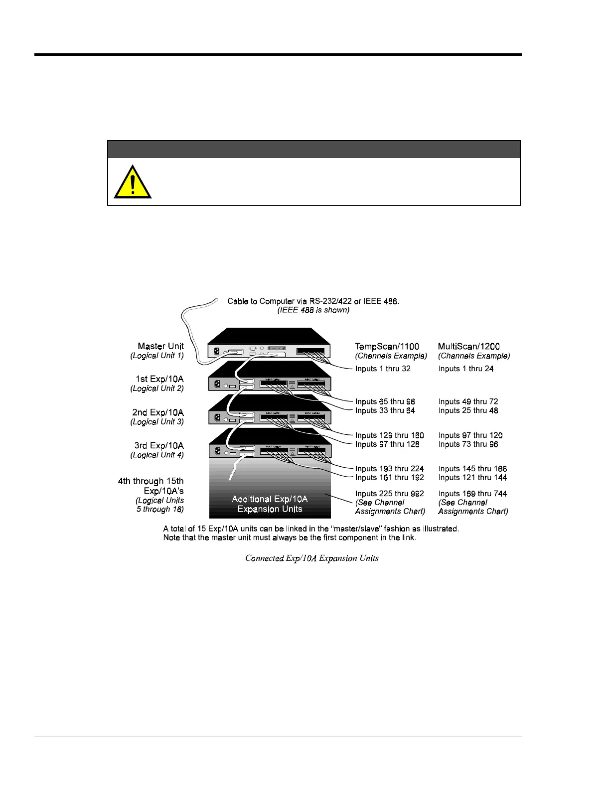 Up to fifteen Exp/10A expansion units can be connected to the TempScan/1100 or MultiScan/1200